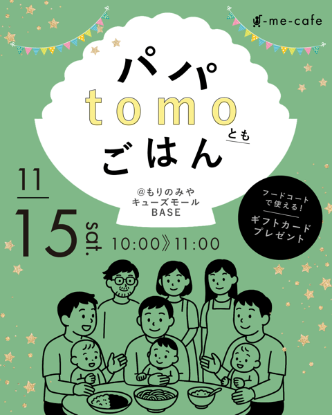 【もりのみやキューズモールBASE×U-me-cafeコラボ】パパtomoごはん