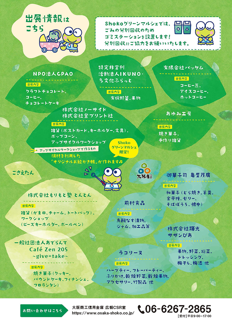環境に配慮した素材や製造方法で作った美味しいものやアップサイクルワークショップなど楽しいものが集まったマルシェです。