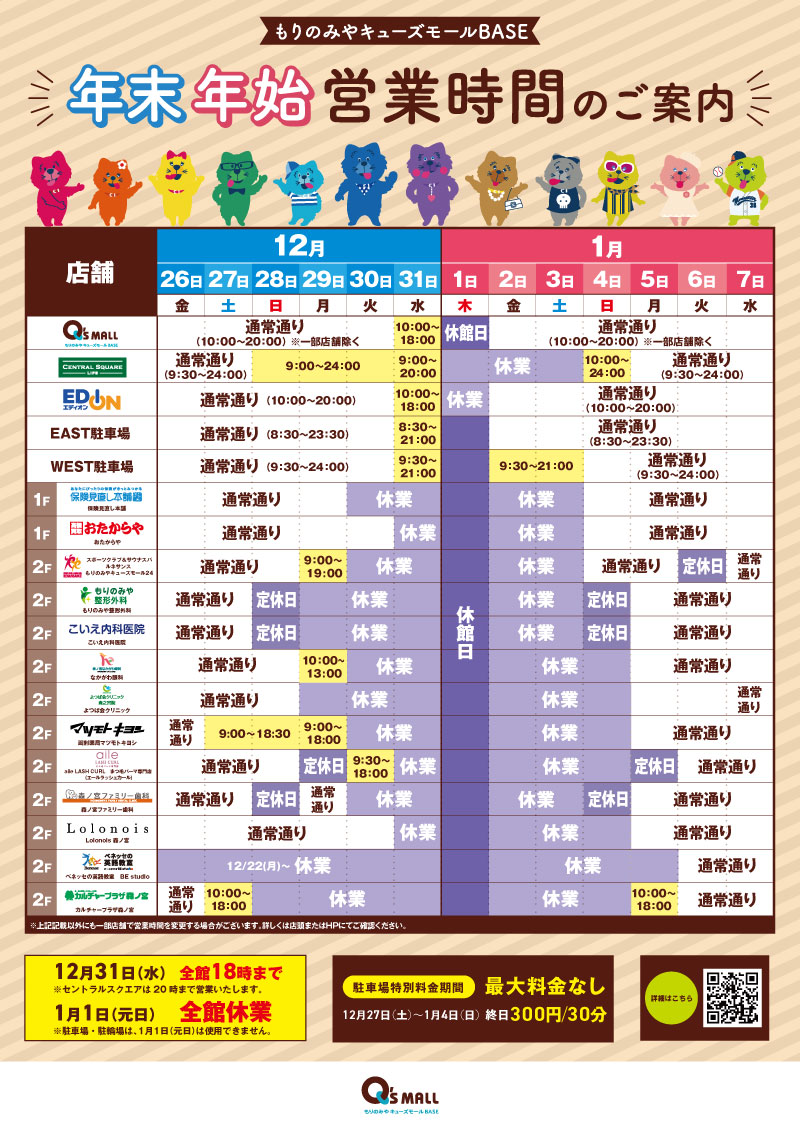いつも、もりのみやキューズモールBASEをご利用いただき、ありがとうございます。